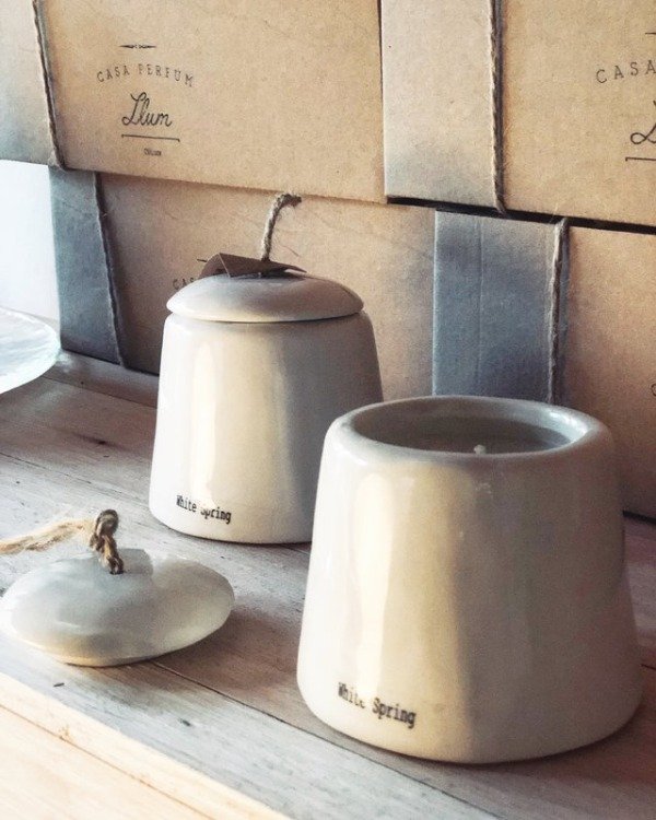 Vela de soja en azucarera de cerámica realizada artesanalmente de 8cm x 7 cm de diámetro.